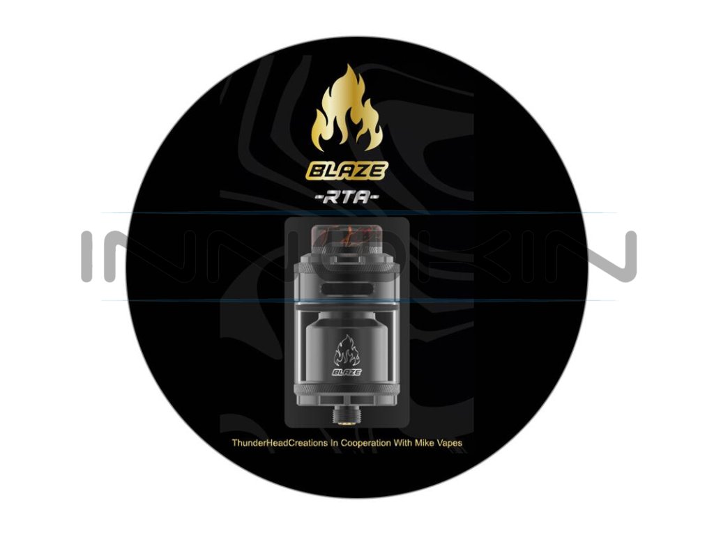 Světoznámý výrobce vaperského hardwaru Thunderhead Creations spojil síly s americkým recenzentem Mike Vapes a společnými silami dali dohromady prvotřídní motací RTA atomizér pro přímé potahování do plic s řadou inovativních prvků a skvělých funkcí pro každodenní vaping. Clearomizér THC Blaze RTA zaujme zejména svým robustním dílenským zpracováním, ale také nesmírně detailním a promyšleným airflow systémem pro zisk maximálního množství plné a prokreslené chuti během vapování. Tělo atomizéru je vyrobeno z vysoce kvalitní nerezové oceli a borosilikátového skla tanku. Délka atomizéru činí 44,5 mm bez náustku a závitu, průměr se potom zastavil na 26 mm ve vrchní části a na 24 mm v části u základny. Spodní část atomizéru je opatřena standardním závitem typu 510, díky čemuž je kompatibilní s drtivou většinou modů na trhu.