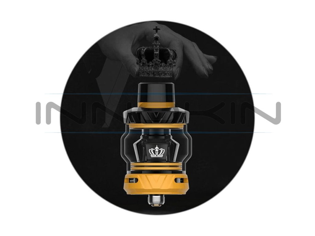 Uwell Crown V Tank je novým korunovaným králem na poli DL atomizérů na standardní žhavící hlavy. A právě designem tradiční královské koruny byl inspirován také samotný design atomizéru. Ten nabídne elegantní zpracování, kvalitní použité materiály a robustní konstrukci s délkou 51 mm a průměrem 29 mm. Královskou korunou je ozdobená také vnitřní komora. S tímhle atomizérem zaručeně vždy vyniknete.