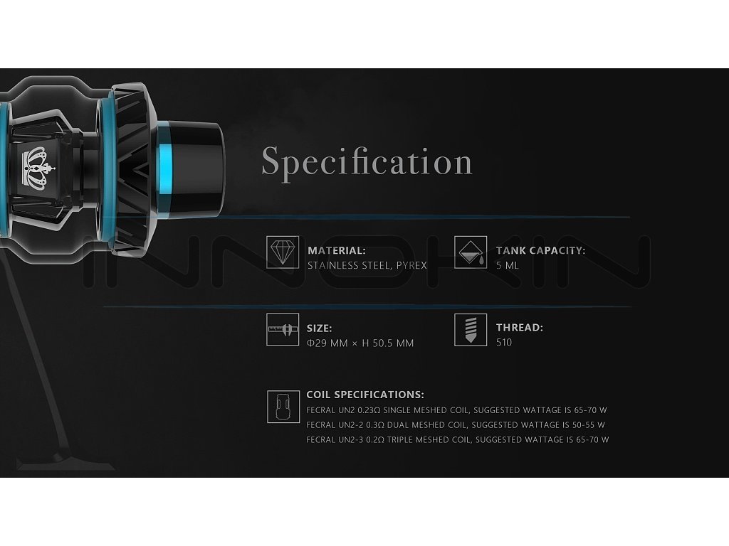 Výkonný nízkoodporový Clearomizér z nerezové oceli a pyrexu, vhodný především pro DL vapování. Objem 5ml. Podpora žhavících hlav Uwell UN2, UN2-2, Plynulá regulace přívodu vzduchu (Airflow), horní plnění e-liquidem, rozměry 50,5mm x 29mm, závit 510. 2x žhavící hlava v Setu.