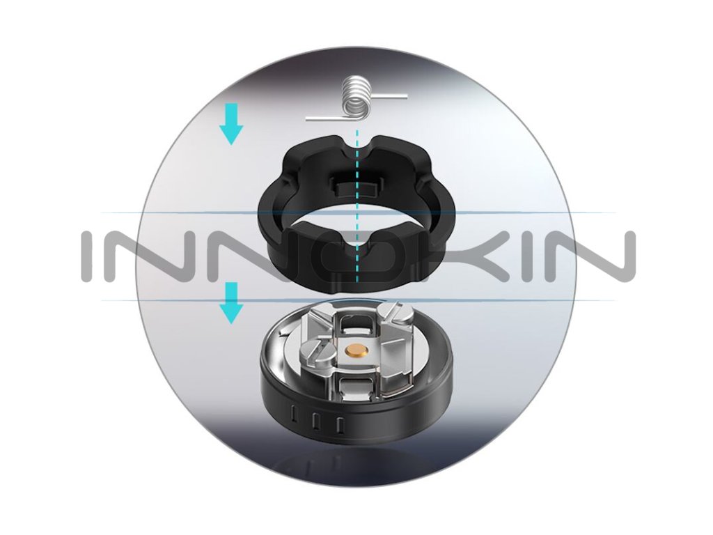 Spodní část atomizéru ukrývá praktickou základnu se dvěma protilehlými sloupky, do které je možné nainstalovat jednu spirálku dle vlastního výběru. Atomizér si poradí s drtivou většinou spirálek, nabídne snadné uchycení pomocí dvou šroubků a pohodlnou instalaci, se kterou si budou rozumět také začátečníci. Celý atomizér potom zvládnete osadit za pár minut.