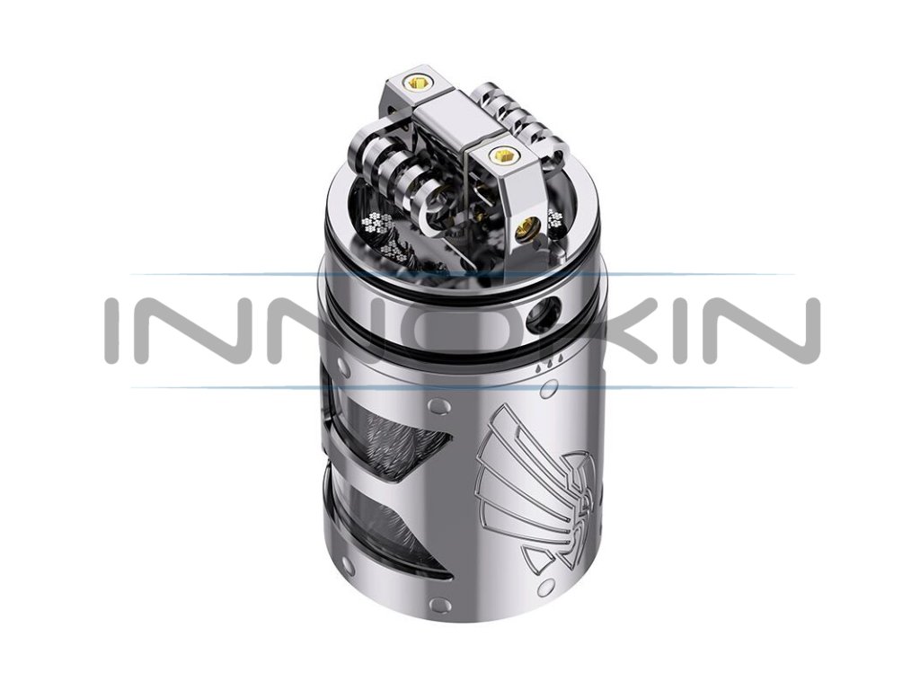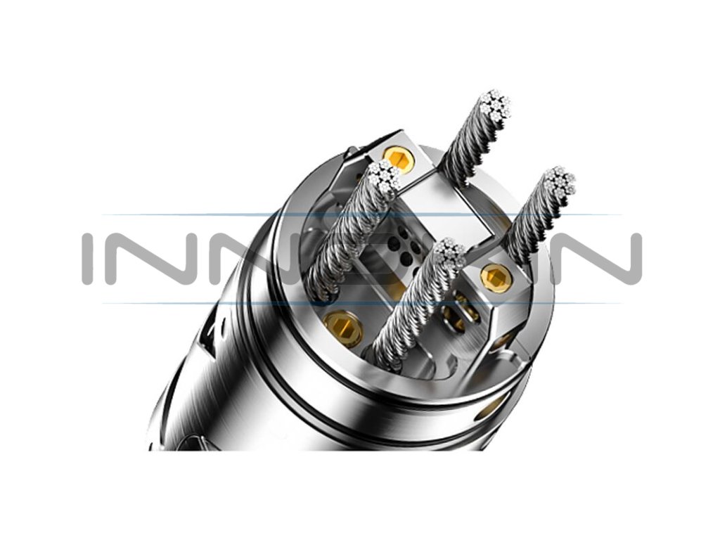 Do velké základny ve vrchní části můžete instalovat jednu, nebo dvě spirálky dle potřeby. Clearomizér podporuje obě dvě varianty buildu, v případě osazení jednou spirálkou vložíte místo druhé spirálky praktickou záslepku. Instalace je nesmírně snadná a rychlá. O co nejlepší podání chuti se postará speciální airflow systém 360°. Otvory pro přísun vzduchu se nachází přímo v úrovni spirálek a zaručí plynulou cirkulaci vzduchu uvnitř atomizéru. Přímo u základny se pak nachází ještě praktická airflow vložka, v balení na vás čekají hned dva druhy, které zprostředkují unikátní požitek z vapingu. E-liquid je k základně z tanku přiváděn pomocí ocelových drátů, které můžete znát již z původní verze Brunhilde. Nově zde najdete celkem šest slotů pro umístění šesti drátů, můžete však použít také jen čtyři dráty a zbylé dva otvory zaslepit. Možnosti jsou skutečně rozsáhlé. Vapefly Brunhilde 1o3 RTA je špičkový DL motací atomizér, který vás ohromí už po prvních minutách používání.