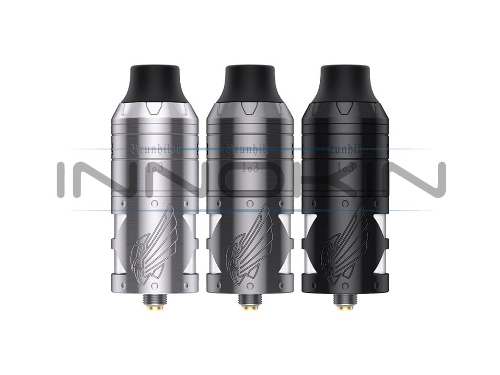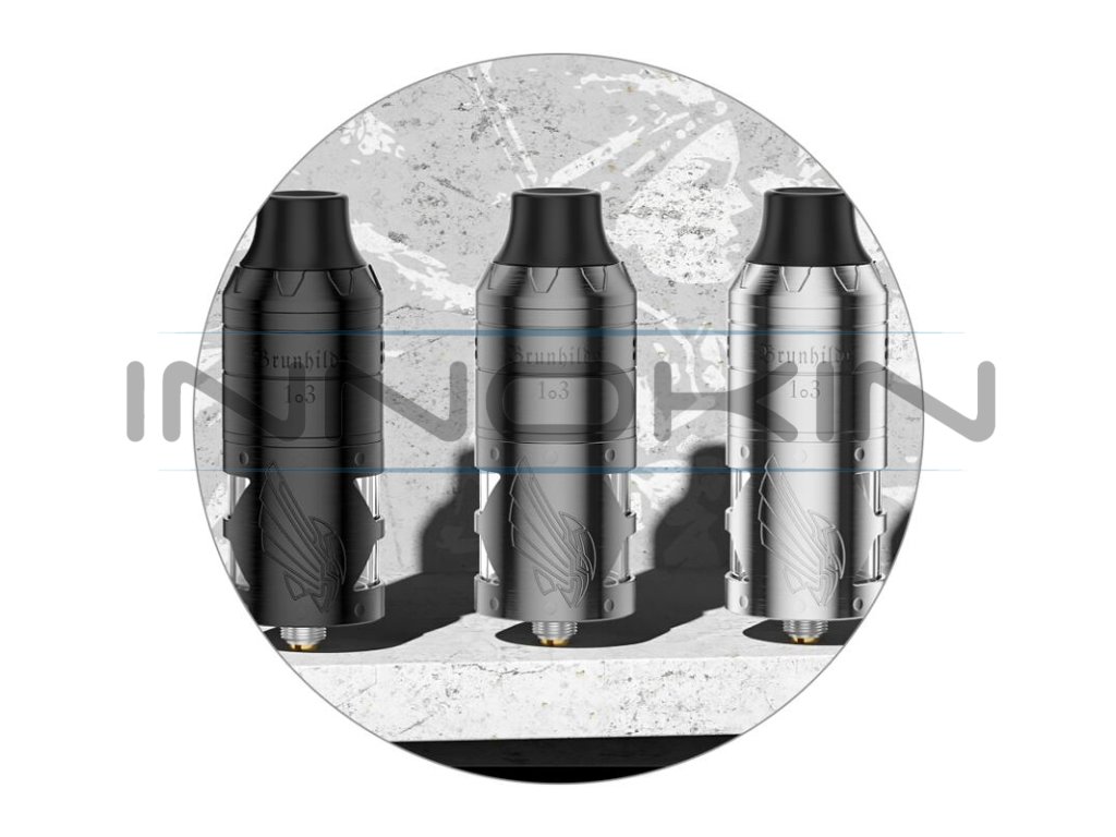 Upgradovaná verze slavného a oblíbeného clearomizéru Brunhilde RTA se představuje pod zajímavým názvem Vapefly Brunhilde 1o3 RTA. Stejně jako u první generace, i zde se o design a zpracování celého atomizéru postaraly hned dva vaperské týmy, clearomizér vzešel ze spolupráce společnosti Vapefly a německé vaperské skupiny známé jako German 103 Team. Díky dlouhodobé spolupráci těchto týmů se můžete těšit na excelentní design a nesmírně kvalitní zpracování. Tělo clearomizéru je vyrobeno z kvalitní nerezové oceli. Vapefly Brunhilde přináší také přepracovaný systém airflow a ještě lepší a plynulejší zásobení základny e-liquidem. Jedná se o clearomizér typu top coiler, jeho základna je tudíž umístěna ve vrchní části, přičemž tank pro e-liquid se nachází ve spodní části. Objem tanku činí 7 ml a snadno ho doplníte díky skrytému bočnímu plnícímu otvoru.