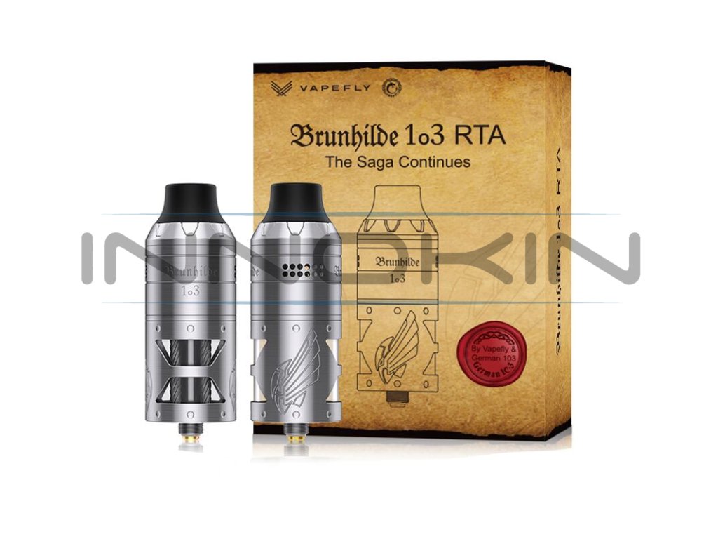 Vapefly Brunhilde 1o3 RTA jde ve šlépějích předchozího DL modelu Brunhilde RTA. Z první generace si osvojuje hned několik prvků, tím nejdůležitějším je potom top coiler konstrukce. Základna je tak umístěna ve vrchní části a e-liquid je přiváděn k základně pomocí ocelových vláken ze spodního tanku. Pro účinné zásobování je atomizér opatřen hned šesti sloty pro šest ocelových drátů, použít můžete také standardní konfiguraci se čtyřmi dráty, kdy postačí dva zbývající sloty zaslepit.