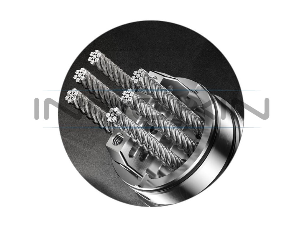 Samotné osazení základny spirálkou je nesmírně variabilní. Základna totiž podporuje jak single coil, tak také dual coil buildy. V případě osazení pouze jednou spirálkou nasadíte na druhou stranu speciální záslepku. Pokud však chcete dosáhnout co největšího množství páry, osadíte základnu dvěma libovolnými spirálkami dle vlastního výběru. Celá montáž je nesmírně snadná a intuitivní, spirálky nainstalujete během pár minut.