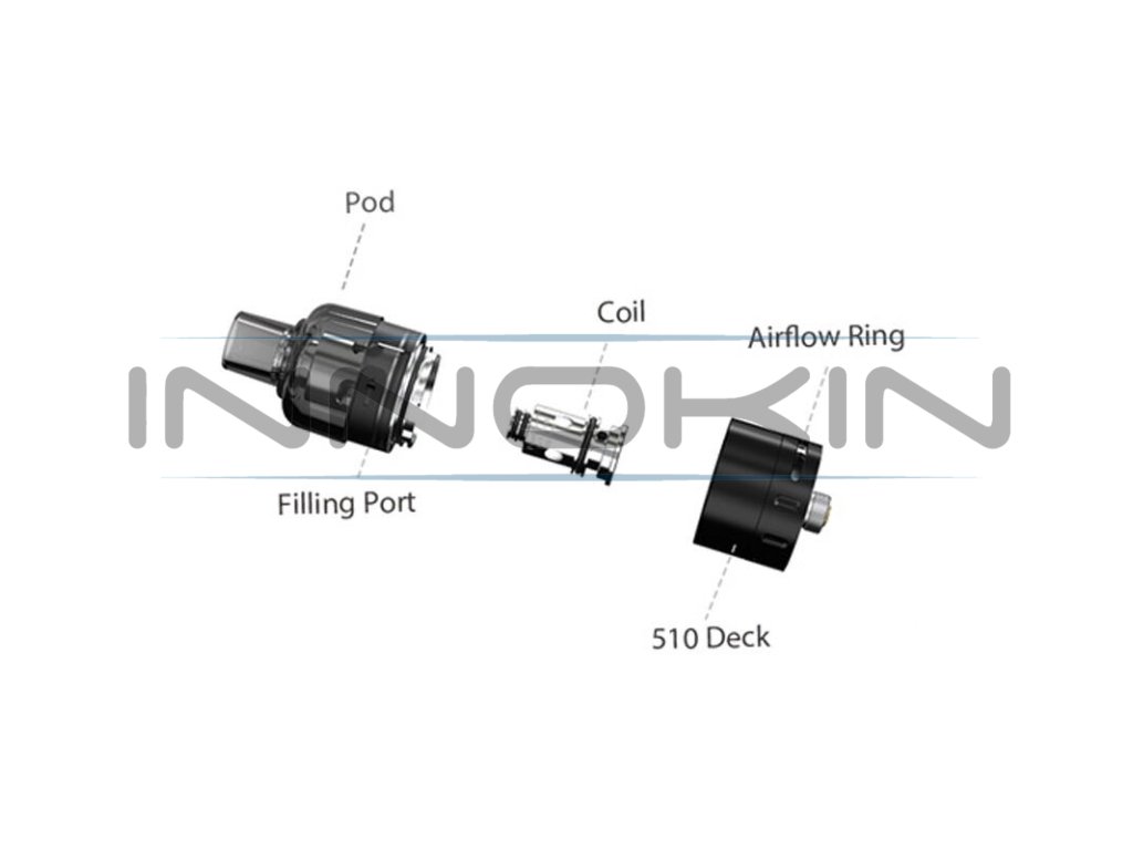 Ve spodní části clearomizéru se nachází závit typu 510. Díky tomuto typu závitu je clearomizér plně kompatibilní se všemi mody se stejným typem závitu. Pokud hledáte jednoduchý clearomizér pro svůj oblíbený mod, jednoduše ho našroubujete na závit a můžete začít ihned používat.