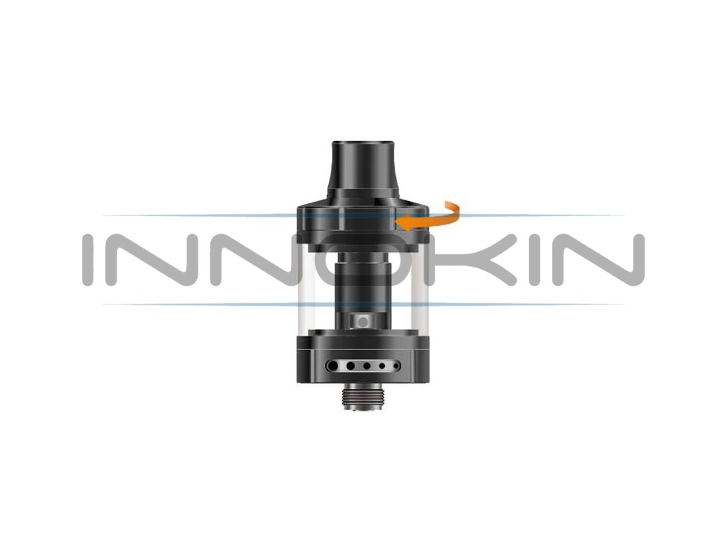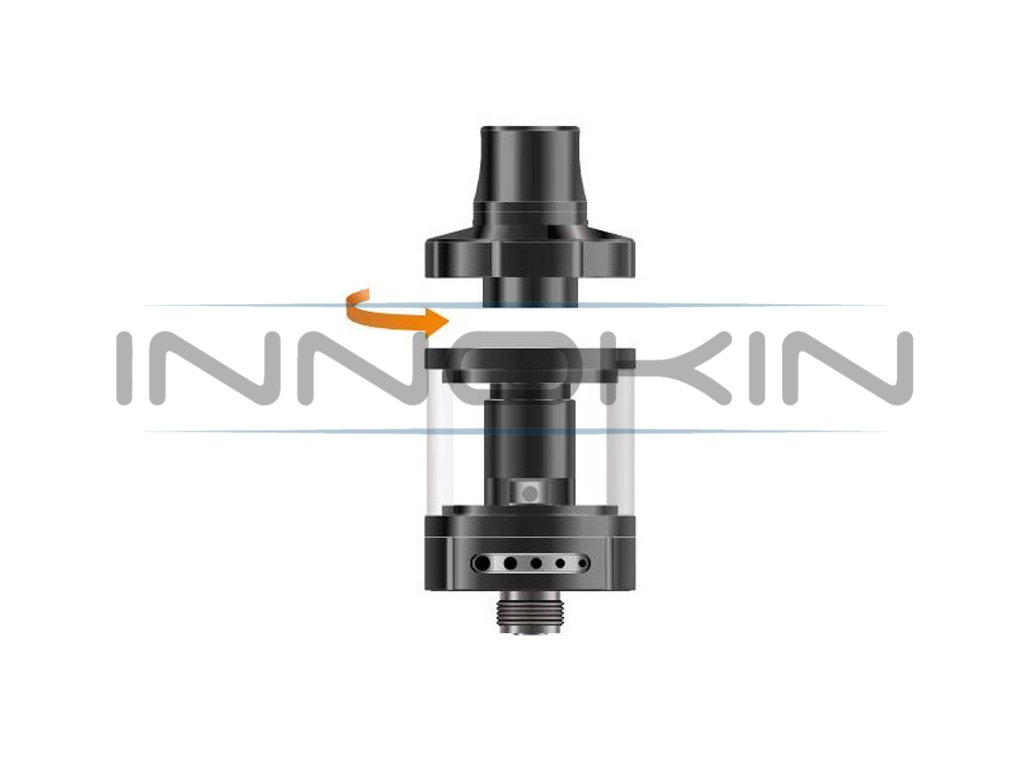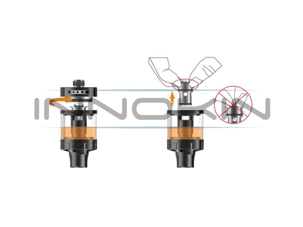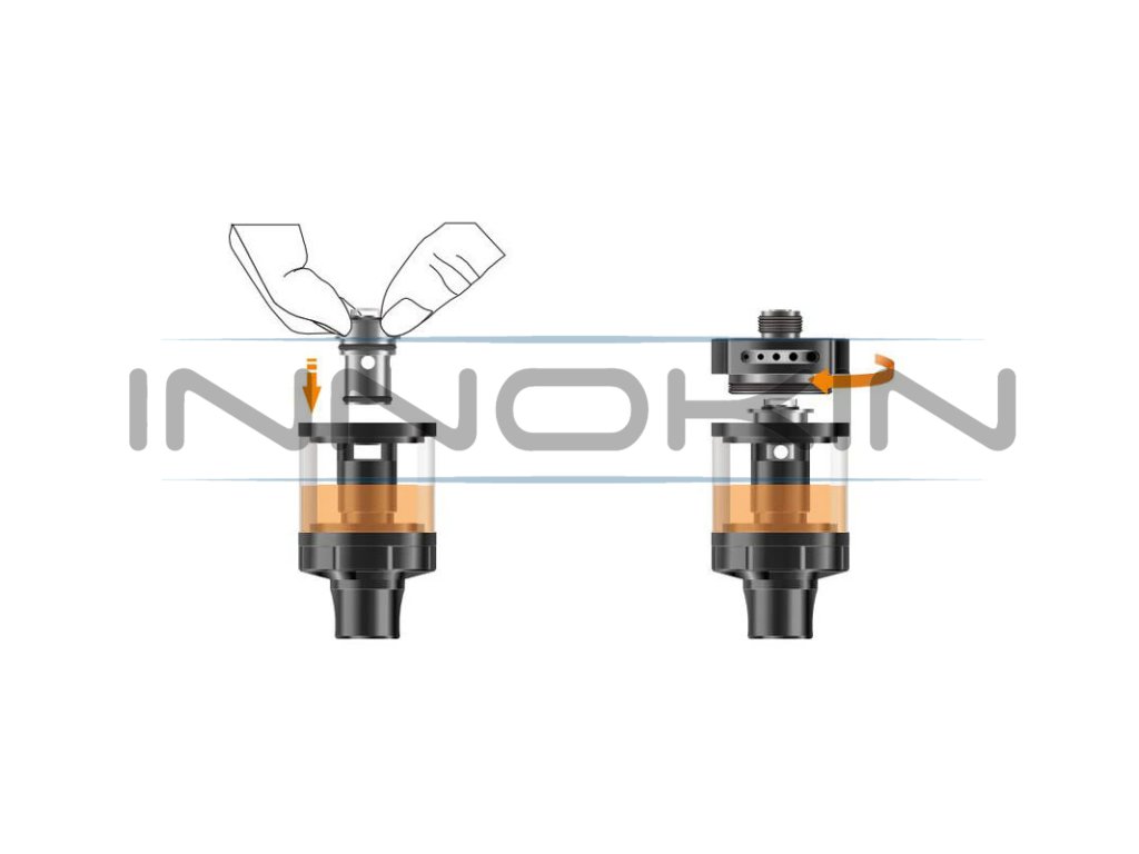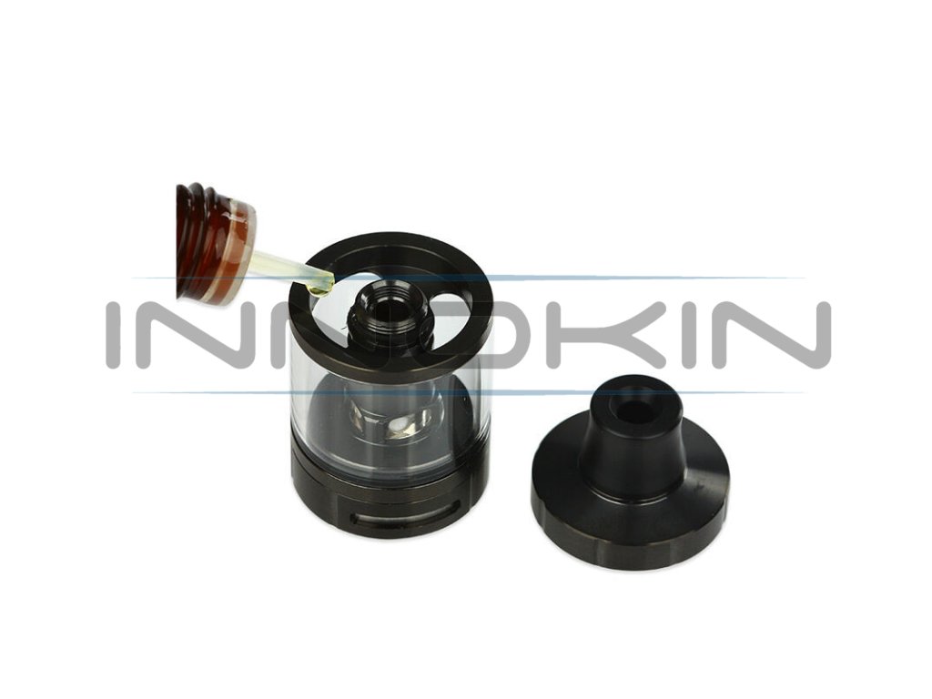 Jednoduchým pohybem odšroubujte vrchní uzávěr a začněte doplňovat e-liquid do bočních otvorů. Nikdy pro plnění nepoužívejte středový otvor, jedná se o komoru a e-liquid by vám protekl ven. Tento plnící systém je prověřený dlouhými roky a zkušenostmi celé vaperské komunity. Je rychlý a intuitivní, každý uživatel bude mít doplněno během pár vteřin.