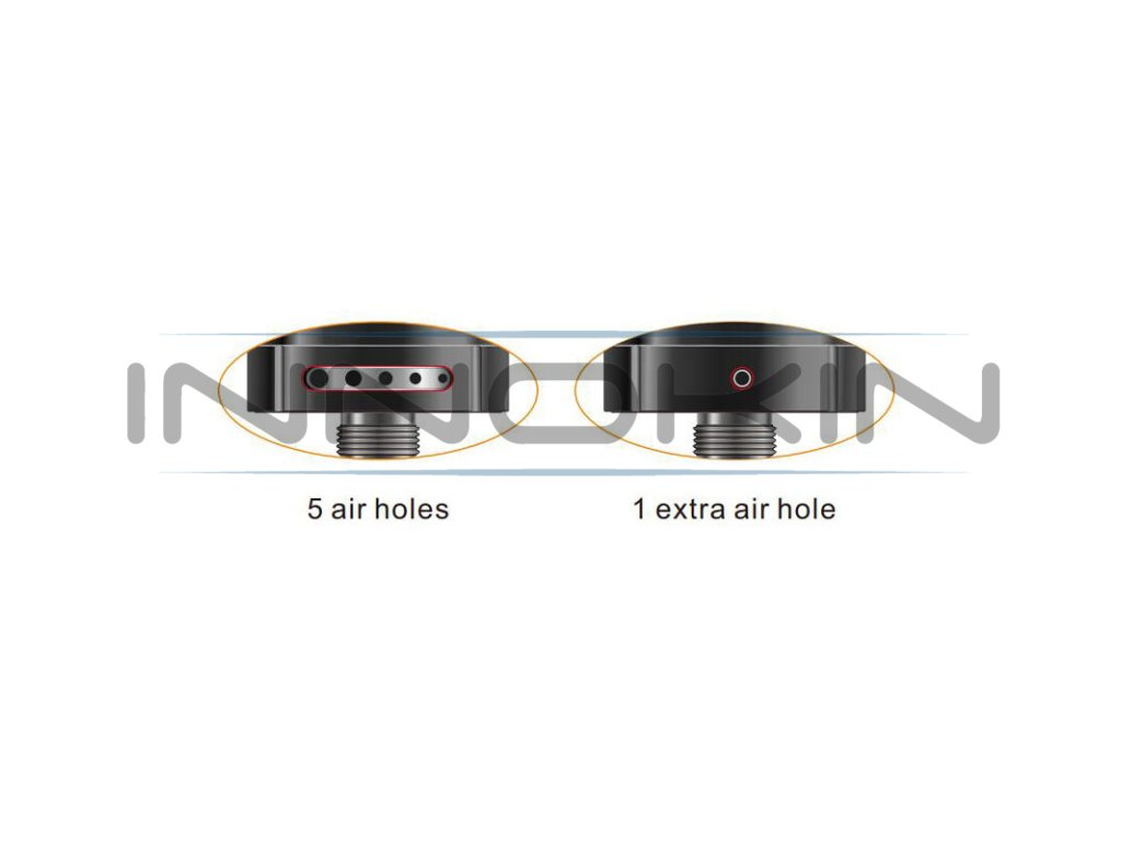 Pro optimální nastavení produkce páry a úpravu tuhosti potahu použijte spodní systém airflow. Ten nabídne celkem pět otvorů pro přísun vzduchu s různými průměry. Otáčením regulačního kroužku si sami zvolte požadované nastavení airflow. Z druhé strany se navíc nachází ještě jeden extra vzduchový otvor, který umožní plynulejší přísun vzduchu do tanku, čímž značně ovlivníte chuť. Nastavení je skutečně bohaté a každý si může přizpůsobit potah přesně svým představám.