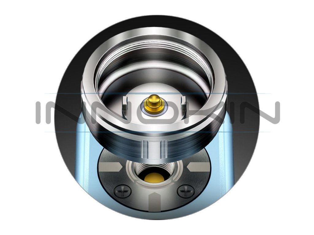 Výborným prvkem atomizéru je potom horní systém regulace vzduchu. Díky umístění v horní části je zajištěna plynulejší a efektivnější cirkulace vzduchu uvnitř atomizéru a zároveň je zamezeno možným únikům e-liquidu, jako tomu může dojít u atomizérů se spodním systémem airflow. Plynulá regulace přívodu vzduchu navíc umožňuje snadné přizpůsobení tuhosti potahování pro jakýkoliv styl vapingu.