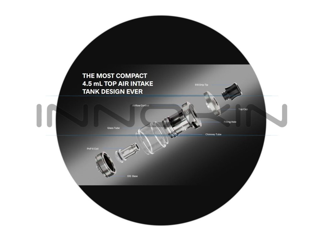 Samotný tank disponuje obrovským objemem díky osazení takzvaným bubble tělem. Do tanku se vejde až 4.5 ml e-liquidu, což je dostatečná kapacita i pro náročnější užívání a pro všechny typy vapování od DL až po MTL. Nemusíte se tak starat o časté doplňování a můžete strávit více času bezstarostným vapováním.