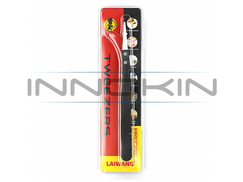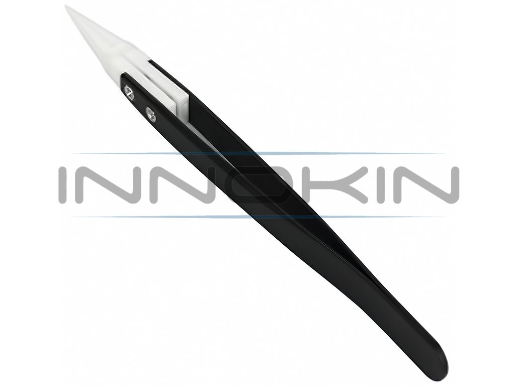 Pinzeta se zahnutými keramickými hroty, pro hůře dostupné prostory, užitečná při výrobě vlastních spirál, přesné instalaci absorpční vaty aj.