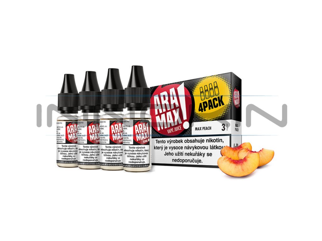 Aramax Max Peach (Broskev) 4x10ml intenzita nikotinu 18mg tabáková nálepka Kolek Q