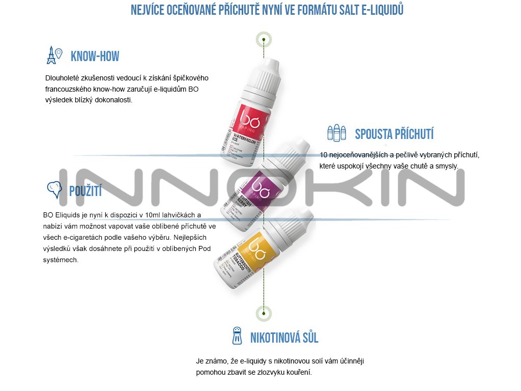 Chladný závan ovocné svěžesti, který na sebe nabalí pořádný punč, čerstvý meloun se otřásá ledem v tomto e-liquidu plném čerstvosti. E-liquid s nikotinovou solí francouzského výrobce BO Vaping a poměrem PG 50%, VG 50%.