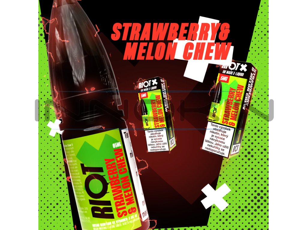 - 1x e-liquid RIOT X Salt Strawberry & Melon Chew 10 ml