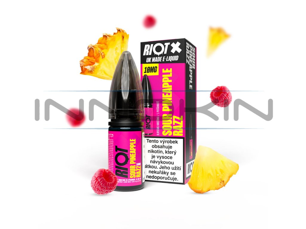 - 1x e-liquid RIOT X Salt Sour Pineapple Razz 10 ml