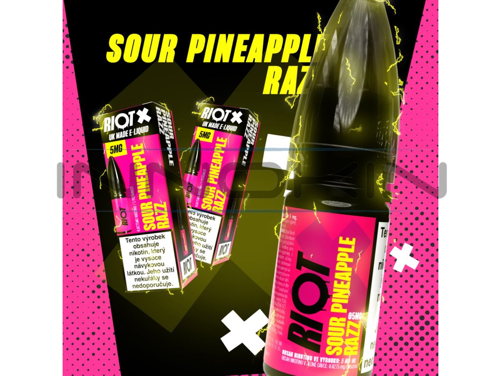 - 1x e-liquid RIOT X Salt Sour Pineapple Razz 10 ml