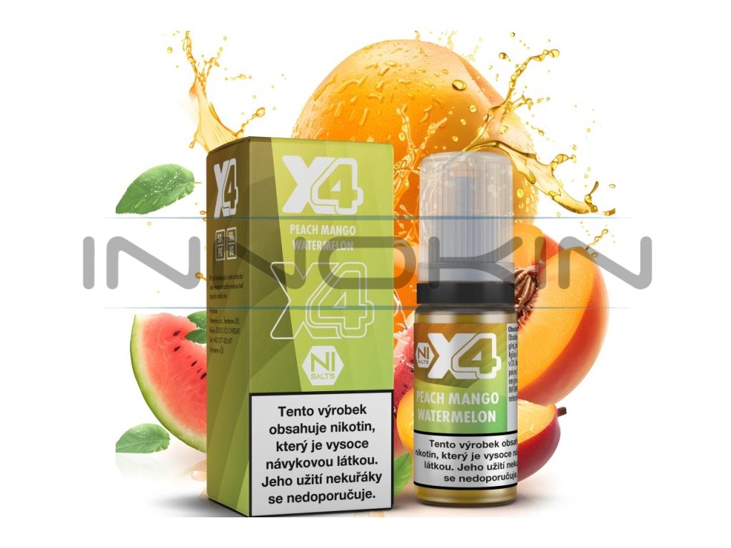 Liquid X4 Bar Juice - Broskev, mango a meloun (Peach Mango Watermelon) 10ml - 20mg