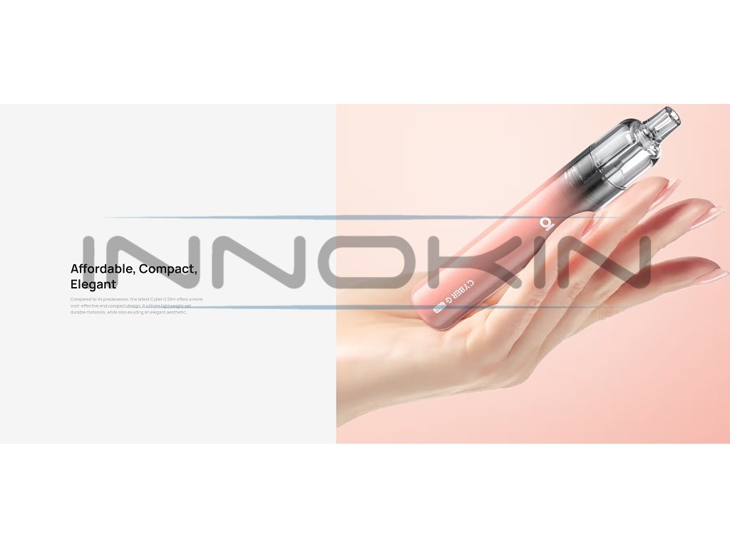 Designově se Aspire Cyber G Slim odlišuje od běžných elektronických cigaret díky svému elegantnímu a minimalistickému vzhledu s povrchem příjemným na dotyk. Absence displeje a složitých nastavení podtrhuje filozofii jednoduchosti - stačí nabít, naplnit a vapovat. 2ml Pod Cartridge se silikonovou krytkou pro snadné plnění je navržena pro optimální komfort při potahování pusa-plíce (MTL). Integrovaná žhavící hlava eliminuje nutnost složité výměny spirálek, při opotřebení jednoduše vyměníte celý pod za nový. Magnetický kontakt zajišťuje spolehlivé připojení a snadnou manipulaci. Aspire Cyber G Slim je vyrobena z kvalitních materiálů, které zaručují dlouhou životnost a odolnost proti každodennímu používání. Balení obsahuje vše potřebné pro okamžité zahájení vapování - elektronickou cigaretu, náhradní pod a USB-C kabel. Tato elektronická cigareta představuje perfektní vstupní bod do světa vapování nebo spolehlivého každodenního společníka pro ty, kteří preferují jednoduchost a spolehlivost před složitými funkcemi a nastaveními moderních vape zařízení.