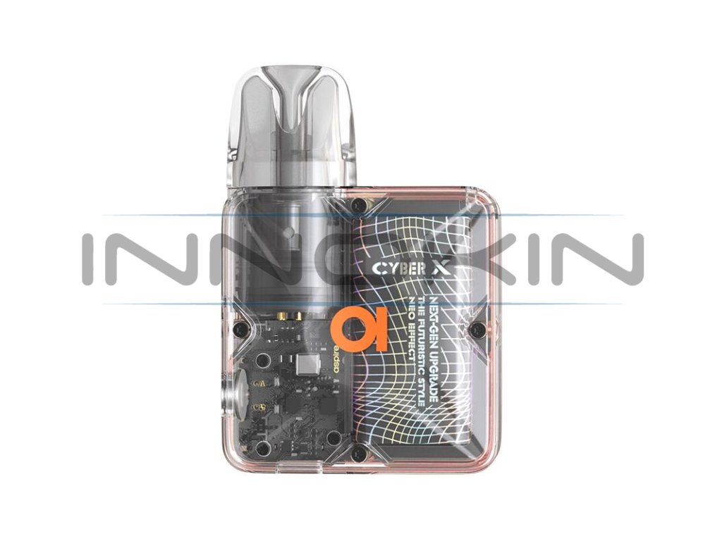 Najděte dokonalý balanc mezi esteticky vyladěným designem a bohatými funkcemi pod systémů. Aspire Cyber X Pod Kit je špičkový pod systém s futuristickým dílenským zpracováním a celou řadou funkcí pro usnadnění každodenního vapování. Kompaktní konstrukce e-cigarety perfektně padne do dlaně a příjemně se užívá. Rozměry se zastavily na krásných 74.2 x 51 x 20.5 mm. V boční části je e-cigareta zakrytá stylovým kovovým štítem s písmenem X a indikačními diodami, z druhé strany potom najdete na zařízení transparentní polykarbonátovou konstrukci, díky čemuž budete mít k dispozici náhled na vnitřní elektroniku e-cigarety. Tělo ukrývá integrovanou baterii s obrovskou kapacitou 1000 mAh pro dlouhou výdrž a stabilní výkon. Baterii budete moci dobíjet prostřednictvím portu USB-C, e-cigareta podporuje nabíjení proudem až 2A.