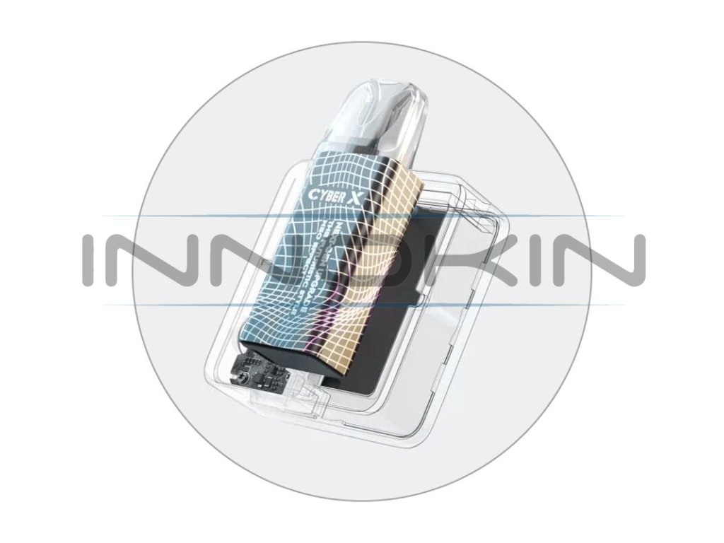 Najděte dokonalý balanc mezi esteticky vyladěným designem a bohatými funkcemi pod systémů. Aspire Cyber X Pod Kit je špičkový pod systém s futuristickým dílenským zpracováním a celou řadou funkcí pro usnadnění každodenního vapování. Kompaktní konstrukce e-cigarety perfektně padne do dlaně a příjemně se užívá. Rozměry se zastavily na krásných 74.2 x 51 x 20.5 mm. V boční části je e-cigareta zakrytá stylovým kovovým štítem s písmenem X a indikačními diodami, z druhé strany potom najdete na zařízení transparentní polykarbonátovou konstrukci, díky čemuž budete mít k dispozici náhled na vnitřní elektroniku e-cigarety. Tělo ukrývá integrovanou baterii s obrovskou kapacitou 1000 mAh pro dlouhou výdrž a stabilní výkon. Baterii budete moci dobíjet prostřednictvím portu USB-C, e-cigareta podporuje nabíjení proudem až 2A.