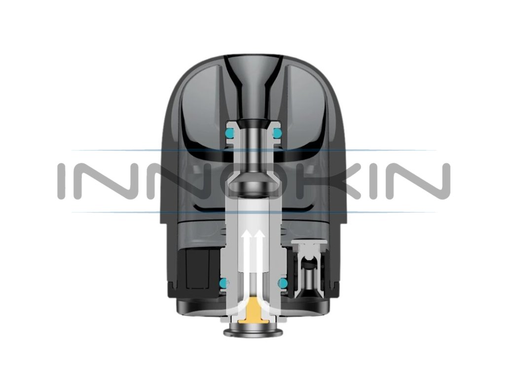 Ve vrchní části se nachází jednoduchá cartridge s ergonomickým náustkem a praktickým bočním plněním. Objem této cartridge činí 2 ml. Je kompatibilní se žhavícími tělísky Aspire AF Mesh, která se představují se dvěma odpory. První z nich nabídne odpor 0,6 ohm, druhé potom odpor 1,0 ohm. Obě tělíska lze využít jak se standardními náplněmi s nikotinem a bez nikotinu, tak také s e-liquidy s nikotinovou solí.