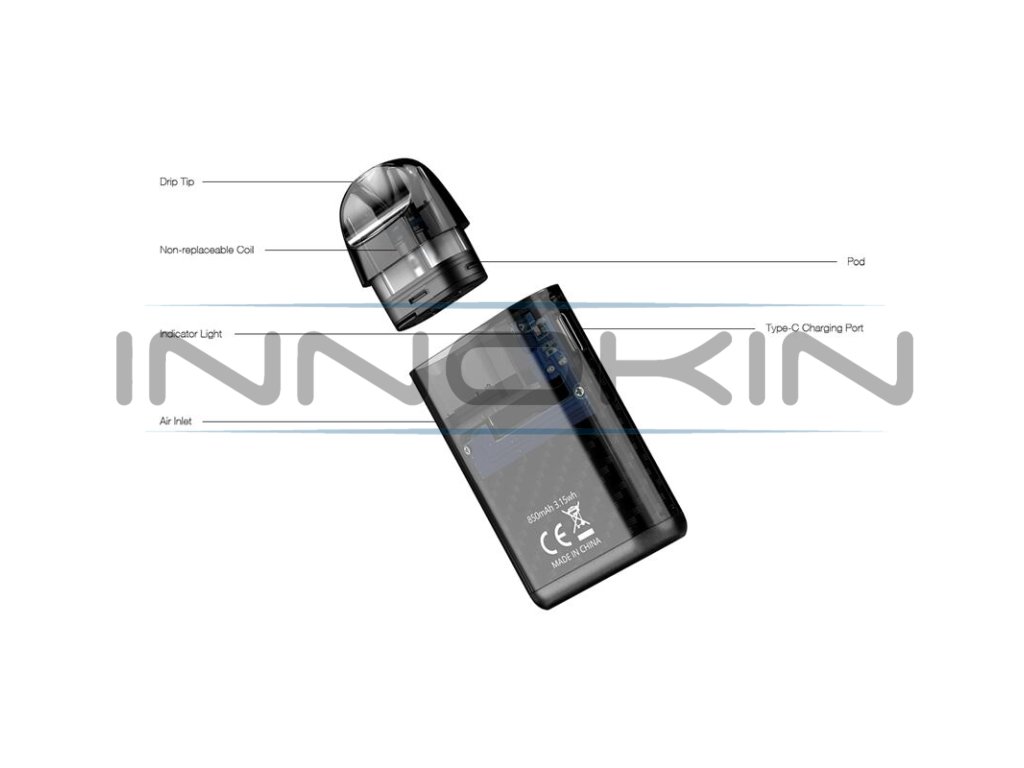 Uvnitř kompaktního těla se nachází integrovaná baterie s obrovskou kapacitou 850 mAh pro dlouhé hodiny pohodového vapingu. Nespornou výhodou je přítomnost USB-C portu pro rychlé a pohodlné dobíjení baterie. Mimo integrovanou baterii se v těle nachází také čip ASP od výrobce Aspire, který se postará o hladký chod zařízení a o bezpečné užívání díky celé řadě bezpečnostních prvků a ochran. Ve vrchní části potom najdete cartridge s objemem 2 ml a ergonomicky tvarovaným náustkem. Uvnitř této cartridge se nachází integrované tělísko s mesh pletivem a odporem 0,8 ohm pro optimální produkci páry a zisk vynikající chuti. Jedná se o skvělé MTL zařízení vhodné pro užívání standardních náplní, ale také pro e-liquidy s nikotinovou solí. Díky spojení kompaktní konstrukce a velké kapacity baterie se rychle stane vaším každodenním pomocníkem při vapování.