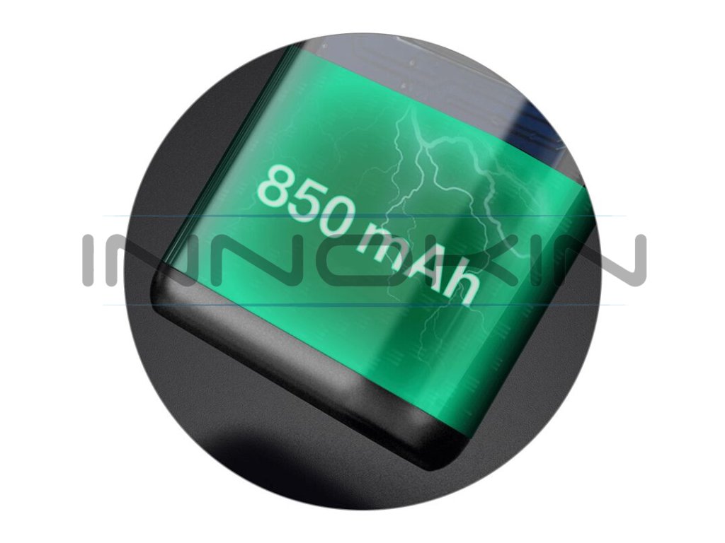 Uvnitř kapesního těla e-cigarety se nachází překvapivě velká kapacita integrované baterie. V těle se nachází baterie s kapacitou 850 mAh pro dlouhé hodiny nerušeného vapování. V případě potřeby pak stačí jednoduše připojit USB-C kabel a baterii znovu kdykoliv dobít do plné kapacity.