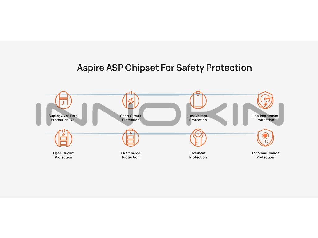VýkonMaximální výkon 30W s rozsahem 5-30W umožňuje přizpůsobení podle vašich preferencí a použité žhavící hlavy. Aspire čipset zajišťuje spolehlivý a bezpečný provoz s možností automatického nebo manuálního nastavení výkonu pro optimální vapovací zážitek. |