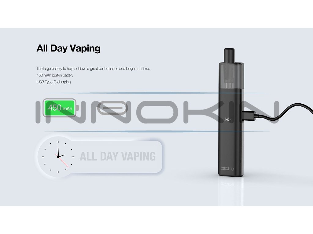 Aspire je jeden z velkých výrobců, který od roku 2013 posouvá dopředu zařízení, ale i způsob vapování. Aspire první představil takzvané BVC hlavy. Aspire se zaměřoval na tyl kouření pusa-plíce, ale jako první přišel s nízkoodporovým tankem. Aspire dále pokračuje na pevných základech. Aspire má pro začátečníky skvělé sady, pokročilí si užijí novou řadu nízkoodporových tanků