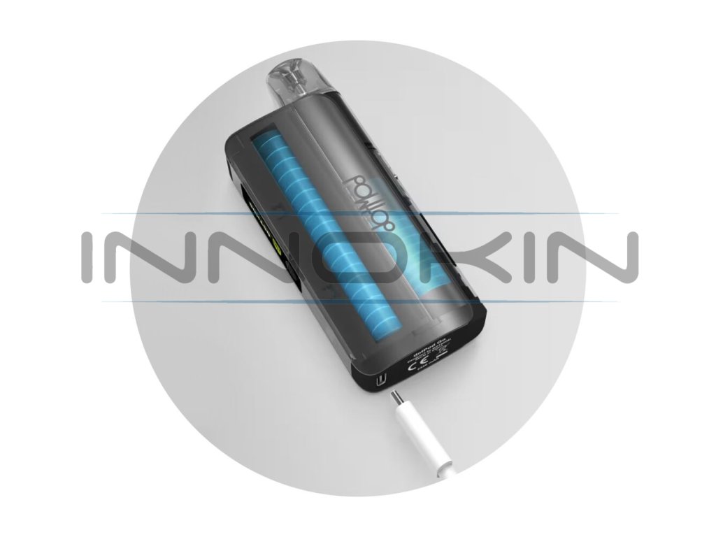 Klíčové informace budete mít vždy na očích, ať už máte v ruce pouze samostatný pod, nebo chcete jen zkontrolovat zbývající kapacitu powerbanky. Displej podu je zjednodušený a zobrazuje uživateli pouze klíčové informace o odporu a procentech baterie. Oproti tomu displej na powerbance je větší, s modernější grafikou a umožňuje přepínat pomocí dotykového tlačítka mezi několika obrazovkami a provádět změny v nastavení.