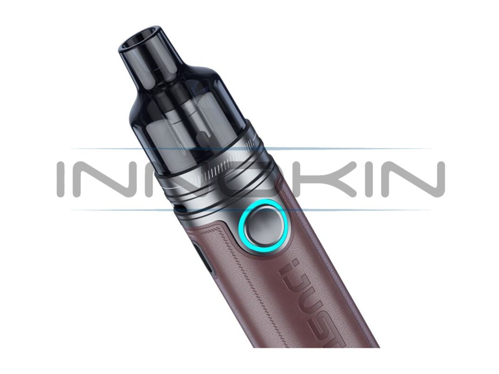 Přední část modelu iJust AIO Pro zdobí velké kulaté spínací tlačítko. To slouží pro snadné sepnutí žhavení, či pro zapnutí a vypnutí e-cigarety. Součástí spínacího tlačítka je také praktická indikační dioda, která vás informuje o stavu vaší baterie, nebo o různých chybách během používání.