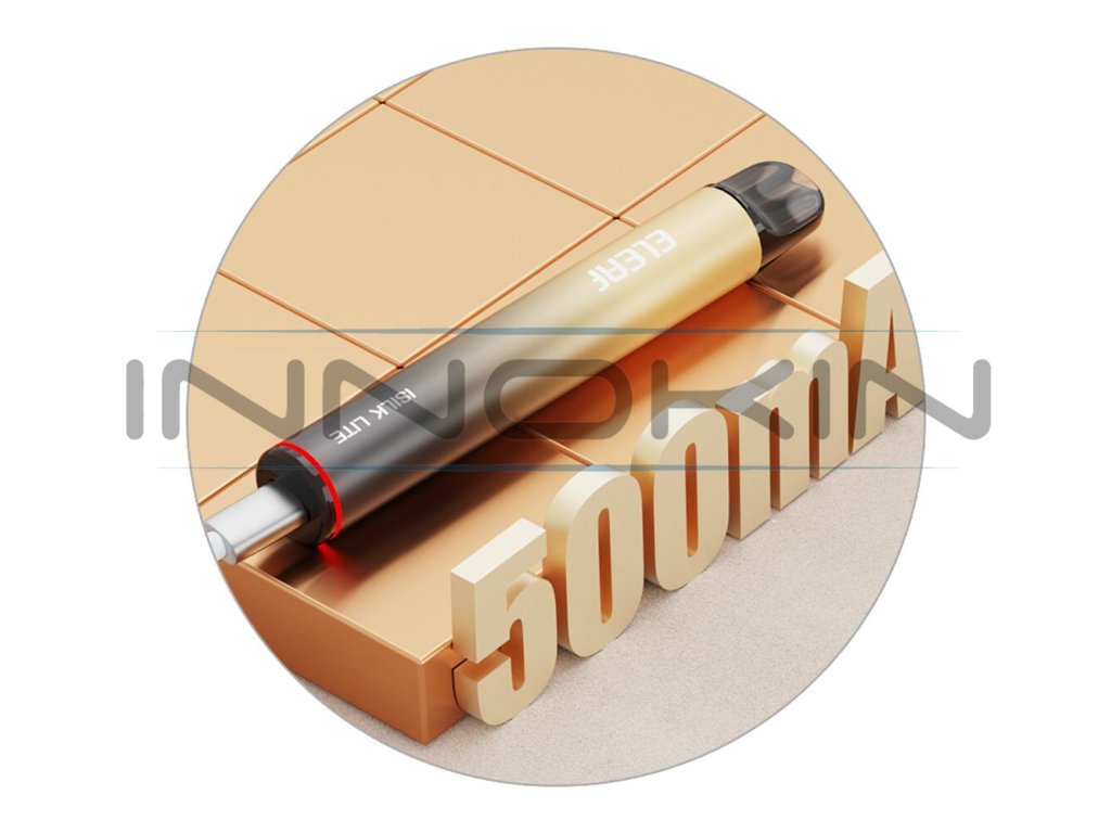 V kompaktním těle modelu Eleaf iSilk Lite Pod Kit se ukrývá integrovaná baterie s výbornou kapacitou 500mAh, která hravě dostačuje na několikahodinové potahování při používání cartridge s odporem 1,0ohm v základním balení. Baterii navíc můžete pohodlně dobíjet prostřednictvím moderního portu USB-C ve spodní části. Podporuje nabíjení proudem 0.5A.