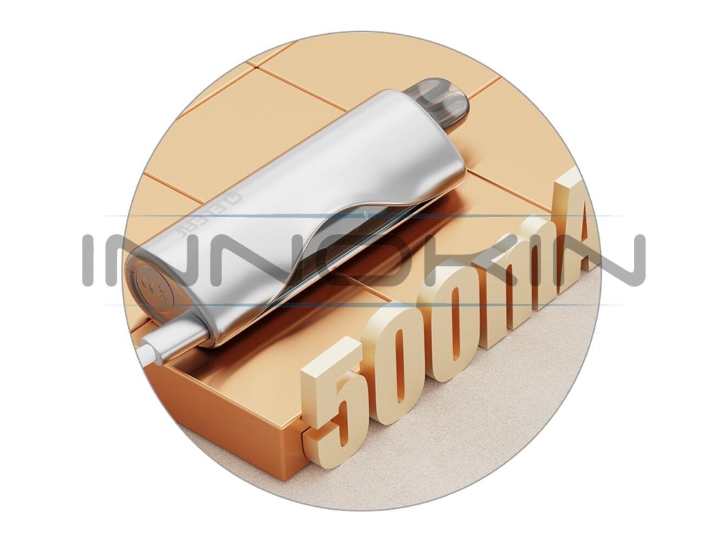 V těle e-cigarety se nachází integrovaná baterie s kapacitou 850mAh pro dlouhé hodiny nerušeného vapování bez potřeby častého dobíjení. S touto kapacitou hravě zvládnete také intenzivnější vaping. Pro účely nabíjení je zařízení vybaveno portem USB-C s podporou nabíjení proudem až 1A.