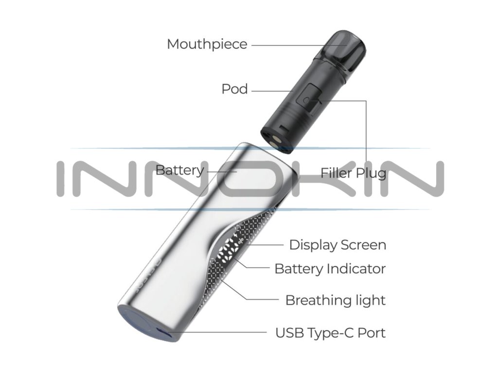 V těle e-cigarety se nachází integrovaná baterie s kapacitou 850mAh pro dlouhé hodiny nerušeného vapování bez potřeby častého dobíjení. S touto kapacitou hravě zvládnete také intenzivnější vaping. Pro účely nabíjení je zařízení vybaveno portem USB-C s podporou nabíjení proudem až 1A.