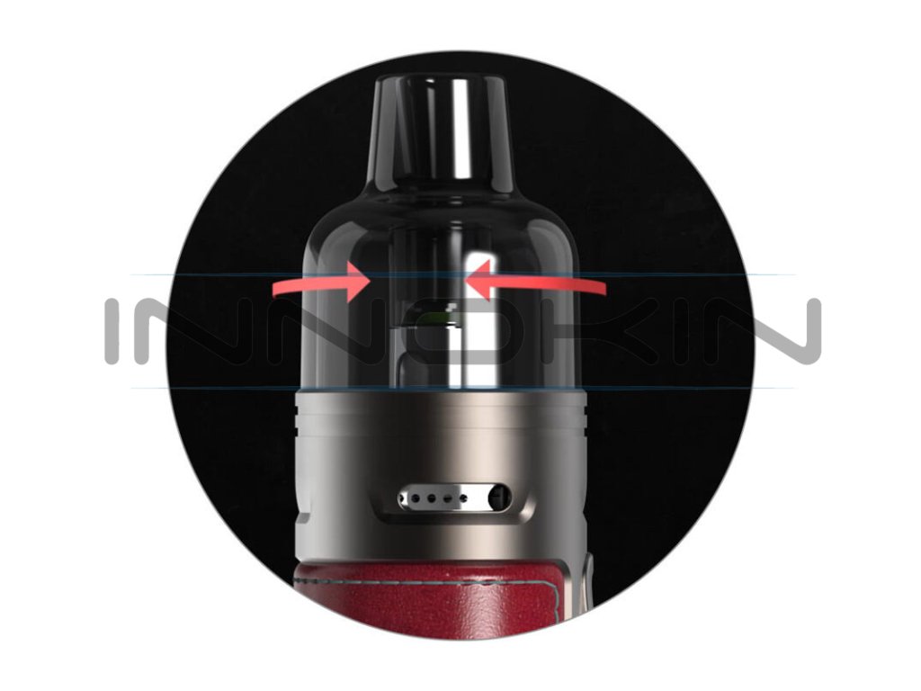 Ve vrchní části se nachází cartridge Eleaf GTL s objemem 4,5 ml. Tato cartridge nabídne praktické spodní plnění, ale také ergonomicky tvarovaný náustek pro co nejlepší zážitek z potahování. Zařízení je kompatibilní s vyměnitelnými cartridgemi Eleaf GTL, samostatně si pak můžete pořídit také cartridge Eleaf GTL s objemem 2 ml a úzkým náustkem, která se výborně hodí pro MTL.