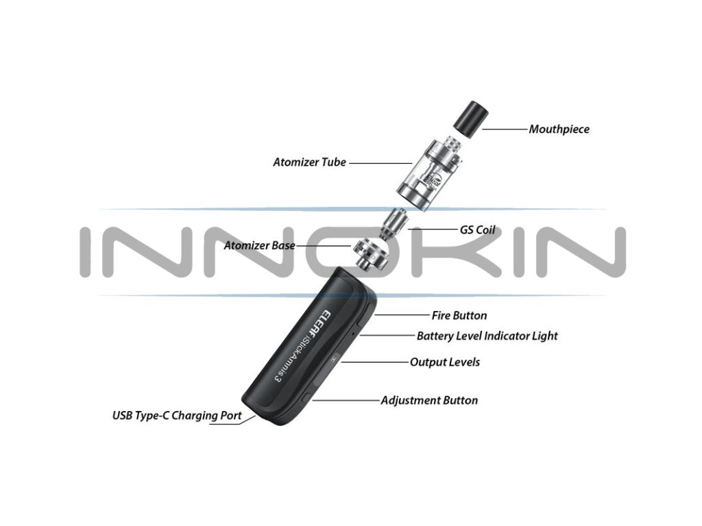 Přední část e-cigarety zdobí jednoduché ovládací prvky, jako je spínací tlačítko, displej pro zobrazení zvoleného režimu a ovládací tlačítko. Eleaf iStick Amnis 3 nabídne tři režimy intenzity výstupního výkonu. Mezi těmito režimy přepínáte pohodlným stiskem ovládacího tlačítka, na výběr máte režimy výstupního napětí 3.3, 3.5. a 3.7 V. Spínání probíhá pomocí velkého tlačítka na předním panelu. Ve vrchní části je model Amnis 3 opatřen závitem s uchycením typu 510. V kompletní sadě se nachází praktický MTL atomizér Eleaf GS Drive s objemem 2 ml s jednoduchým vrchním výsuvným systémem plnění a spodní regulací přívodu vzduchu. Clearomizér pracuje se žhavícími tělísky Eleaf GS Air, přičemž v balení najdete tělísko s odporem 0,75 ohm pro vzdušnější MTL a tělísko s odporem 1,4 ohm pro utažený MTL potah. Ideální startovací MTL sada se vším, co od první e-cigarety očekáváte, to je Eleaf iStick Amnis 3 Kit.