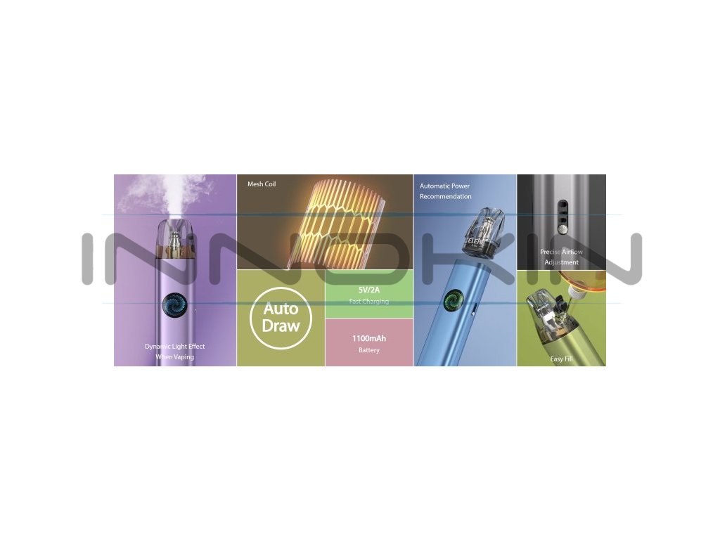 Eleaf iVeni SE je uživatelsky ,,jednodušší´´ verzí řady iVeni. Vestavěná baterie o kapacitě 1100mAh disponuje automatickým výkonem až 35W (dle zvoleného odporu žhavící hlavy) a důmyslně umístěným indikátorem stavu nabití. Díky bočnímu nastavení průtoku vzduchu si přizpůsobíte jedinečný zážitek z vapování.