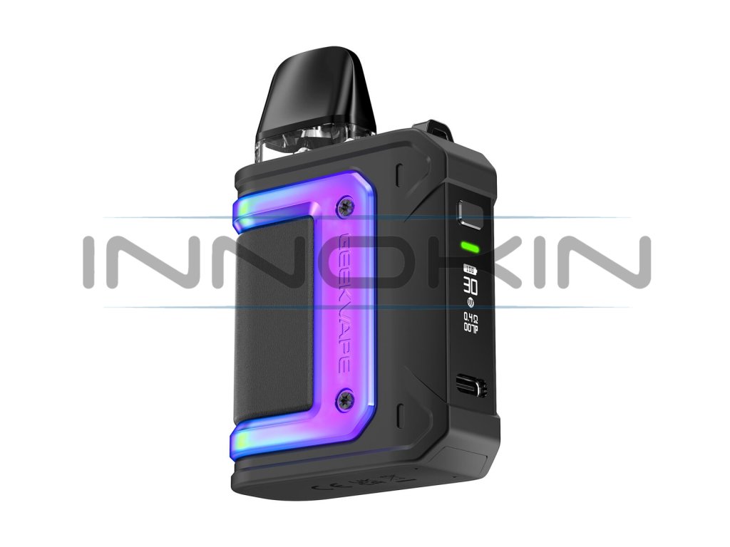 Odlehčenější sourozenec modelu Aegis Hero s označením GeekVape Aegis HERO Q přináší snazší funkce pro ještě komfortnější užívání a kompaktnější konstrukci s podporou oblíbených cartridgí Q Pod Series. Zařízení vhodné pro začínající a nenáročné uživatele se pyšní integrovanou baterií s kapacitou 1300mAh, dvěma metodami spínání potahu a funkcí inteligentní detekce odporu, která automaticky nastaví vhodný výkon podle odporu cartridge. Žádné složitosti, e-cigaretu Aegis HERO Q si jednoduše naplníte e-liquidem, zapnete a můžete se pustit do vapování.