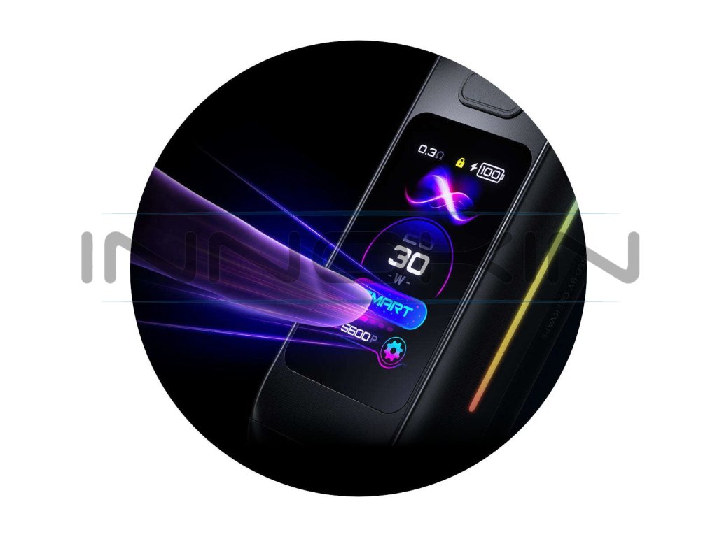 Nepřehlédnutelnou dominantou e-cigarety je obrovský multibarevný displej o úhlopříčce 1.47 palce. Jeho jemné rozlišení a živé barvy jsou opravdovou pastvou pro vaše oči. Displej poskytuje přehledné informace o aktuálním výkonu, zvoleném režimu, odporu cartridge, počtu potahů nebo stavu baterie a veškeré nastavení lze pohodlně a intuitivně ovládat dotykem.