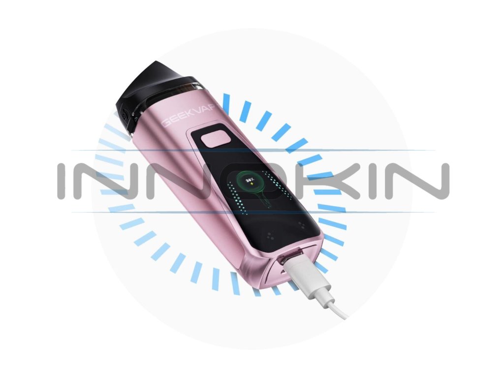 Pokud budete i přes solidní výdrž e-cigarety nuceni vyhledat nabíječku, v ten moment oceníte podporu rychlého nabíjení proudem až 5 V/1.6 A přes konektor USB-C. Za pouhých 20 minut je baterie schopna se dobít až na 50 % kapacity a vy tak budete moci obratem pokračovat ve vapování.