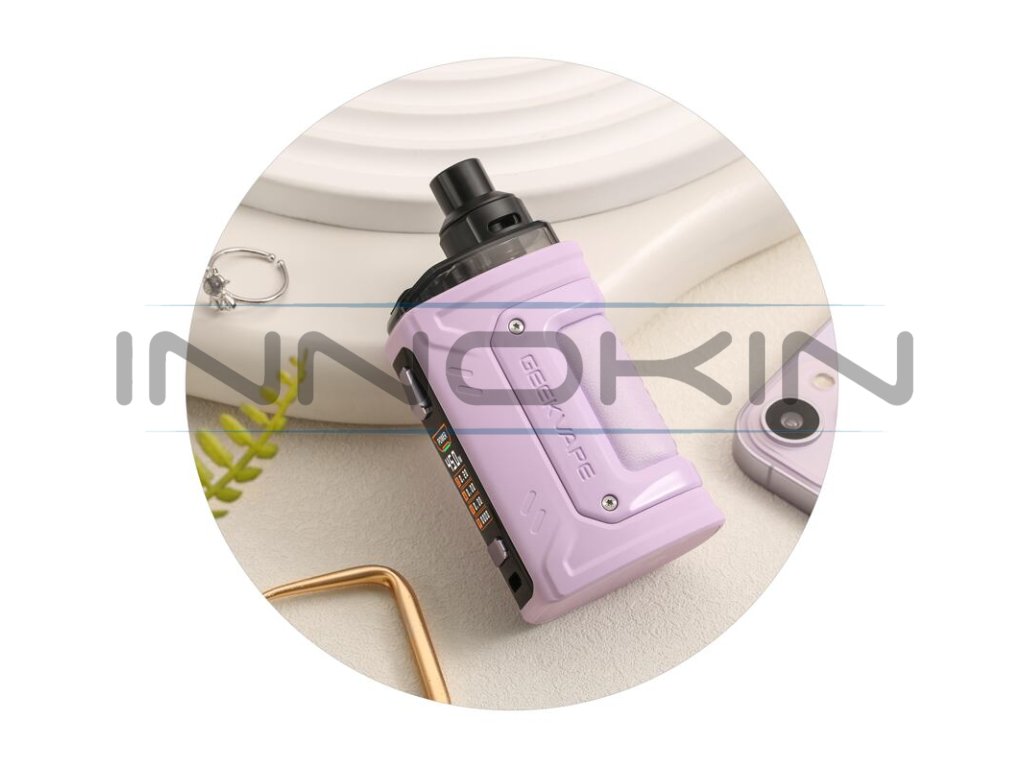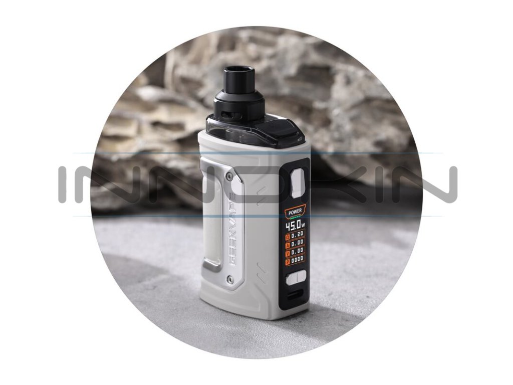 Nástupce legendárních kapesních pod systémů Aegis Hero a H45 je konečně tady. Výrobce uvádí na trh pokročilejší kompaktní pod systém GeekVape H45 Classic Pod, který cílí zejména na příznivce volnějšího stylu potahování. Nabídne robustní a odolné tělo, krásný a estetický design, velkou kapacitu baterie a vysoký výstupní výkon s možností regulace. Konstrukce zařízení je až o 15% lehčí, než předchozí generace, přináší tak ještě komfortnější držení v dlani a ještě pohodlnější přenášení. V jádru e-cigarety se ukrývá integrovaná baterie s obrovskou kapacitou 1400 mAh pro dlouhé hodiny intenzivního vapování a pro využití vyššího výstupního výkonu. Baterii si budete moci kdykoliv pohodlně dobít pomocí portu USB-C na těle.
