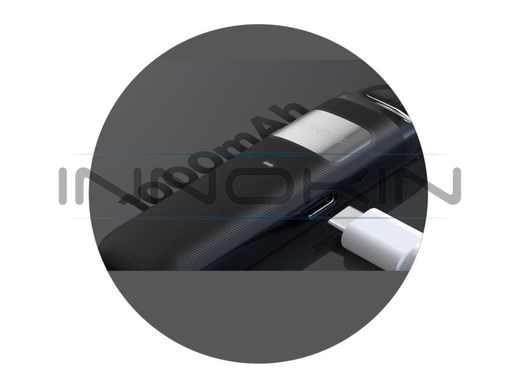 Uvnitř kompaktního těla modelu Sonder U se ukrývá integrovaná baterie s obrovskou kapacitou 1000 mAh. Díky této kapacitě se můžete těšit na dlouhé hodiny intenzivního a nerušeného používání bez nutnosti dalšího dobíjení. V případě potřeby pak postačí jednoduše připojit vlastní USB-C kabel* a baterii kdykoliv dobít proudem až 750mA.