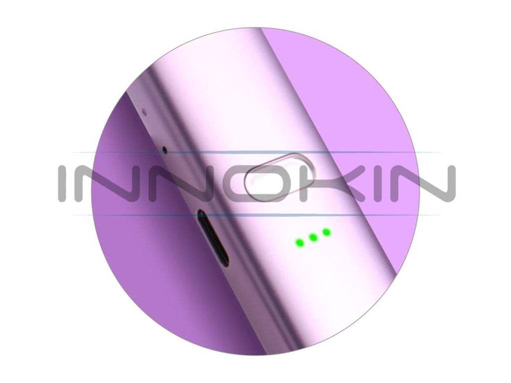 Přímo pod spínacím tlačítkem se nachází tři indikační diody, které slouží pro snadné a rychlé ověření stavu baterie, nebo pro zobrazení možných problémů při vapování. Stav baterie je indikován pomocí tří různých barev, přičemž plně nabitá baterie svítí zeleně, středně nabitá potom modře a téměř vybitá baterie se hlásí červenými diodami. Díky této přehledné indikaci vám již nic neunikne.