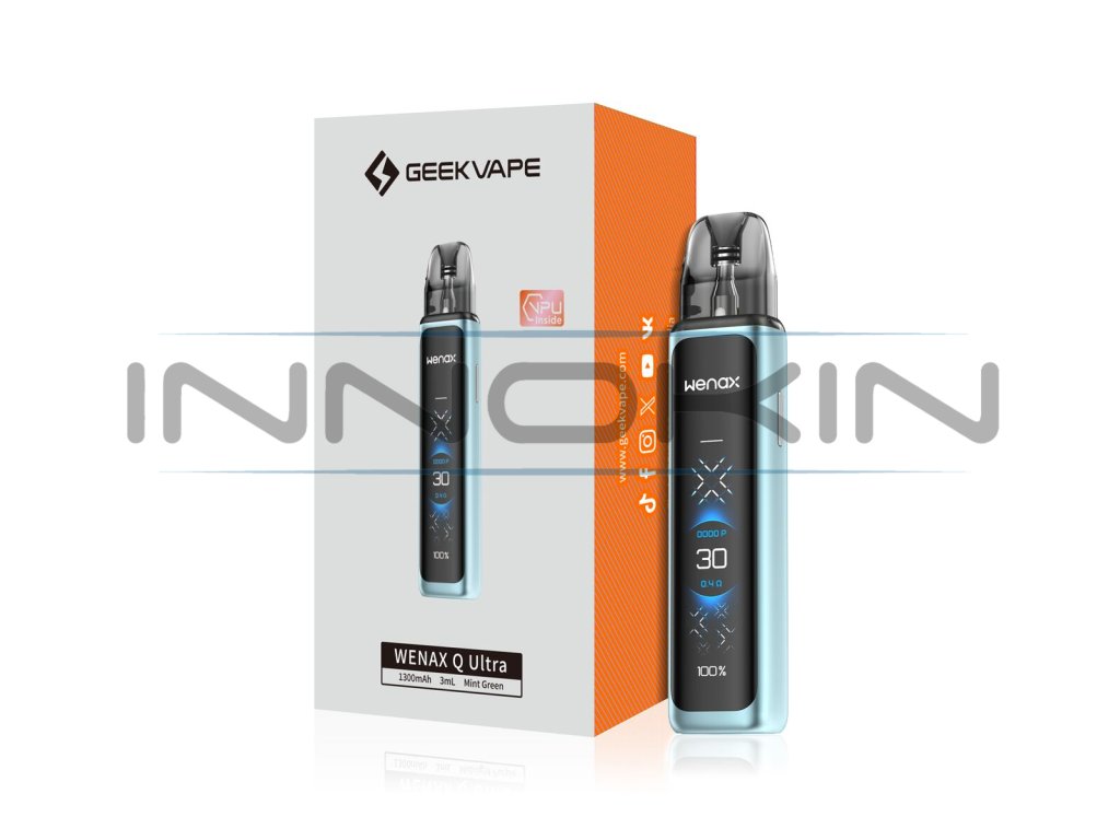 Poutavější, rychlejší, zábavnější. Těmito slovy by se dala charakterizovat novinka od značky GeekVape - pod systém Wenax Q Ultra. Na první pohled jednoznačně upoutá obří displej, jehož kompletně nové uživatelské rozhraní s bleskovou odezvou a podporou dotykových gest je radost používat. 1300mAh baterie zaručuje mnoho hodin vapování. S nastavitelným výkonem až 30 wattů a posuvníkem Airflow dosáhnete skutečně maximální kontroly nad vaším požitkem z vapování. Dále vás jistě potěší i široká škála dostupných odporů pro MTL a RDL vaping. Mimořádná všestrannost činí z Wenax Q Ultra ideální volbu pro široké spektrum vaperů.