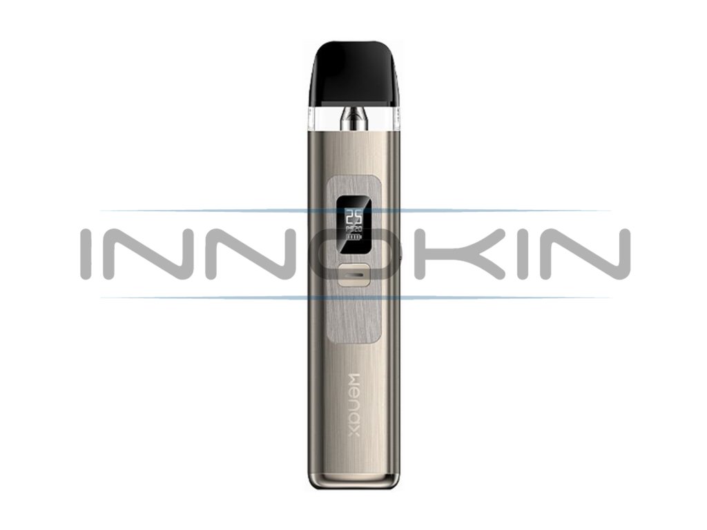 Druhý model ze série Q od renomovaného výrobce GeekVape dostal název Wenax Q Pod Kit. Jedná se o stylový a elegantní pod systém s pokročilejšími funkcemi, které umožní širší variabilitu v nastavení potahu, zařízení tak uživatelům nabídne větší svobodu jak v samotné regulaci výstupního výkonu, tak také v nastavení tuhosti potahování. GeekVape Wenax Q Pod Kit přichází v krásně zpracovaném těle z lehoučké hliníkové slitiny s celkovými rozměry 108,91 x 23,8 x 13,8 mm. Těšit se můžete na populární design tradičních pod systémů se zaoblenými hranami pro co nejkomfortnější užívání a pohodlné držení v dlani. Tělo zařízení je poháněno integrovanou baterií s velkou kapacitou 1000 mAh, která si hravě poradí také s intenzivnějším mnohahodinovým vapingem, baterie se navíc postará o hladký chod a stabilní výkon zařízení. V případě potřeby ji můžete kdykoliv dobít pomocí portu USB-C.