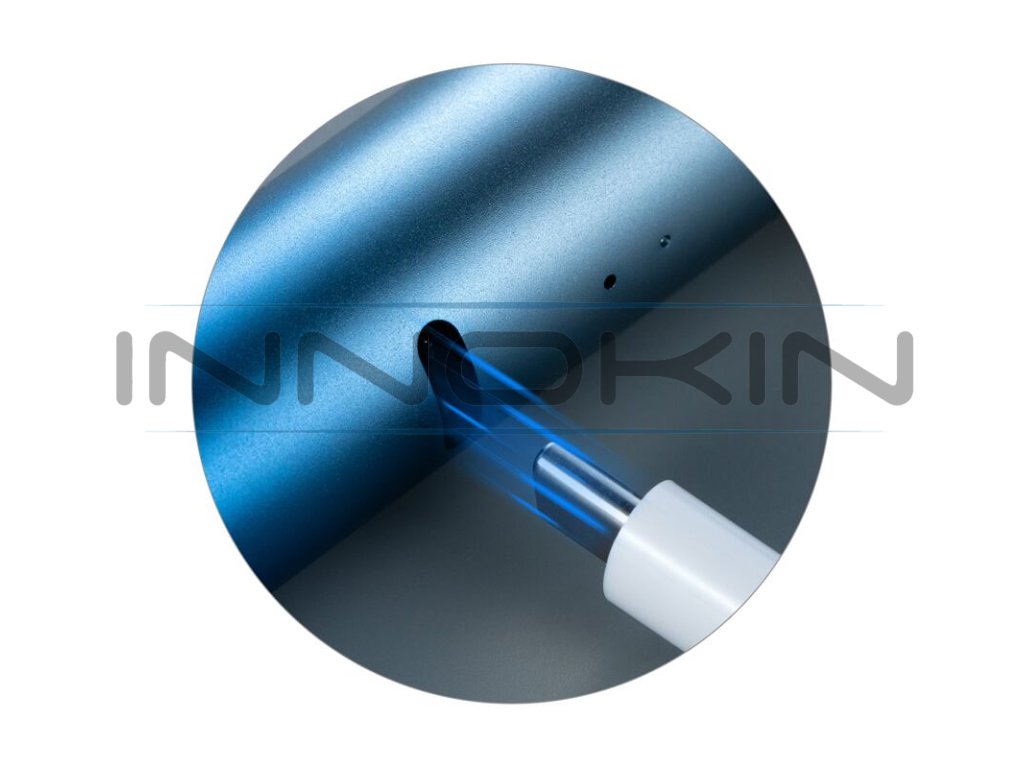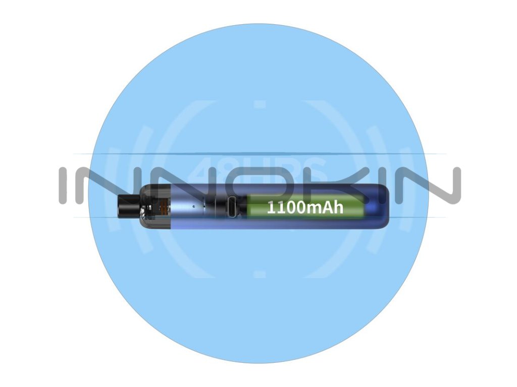 Uvnitř těla e-cigarety se nachází integrovaná baterie se solidní kapacitou 1100 mAh. Ta se postará o dlouhé hodiny nerušeného potahování a zároveň dodá e-cigaretě potřebný výkon pro použití jednoho ze tří režimů intenzity výstupu. Baterii můžete kdykoliv pohodlně dobít přímo na těle připojením USB-C kabelu. Lze dobíjet proudem až 1 A.