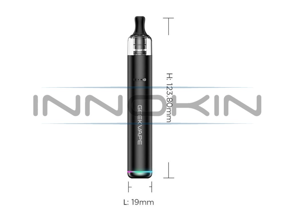 Již třetí generace populárního modelu Stylus od výrobce GeekVape dostala označení S3 Pod Kit. Elegantní e-cigareta láká na velkou kapacitu baterie, tradiční dílenské zpracování a příjemně tuhý potah pro potřeby příznivců klasického šlukování. Krásně zpracované tělo nabídne průměr pouhých 19 mm a délka se zastavila na 123,8 mm. I přes své kompaktní rozměry se v jádru nachází integrovaná baterie s obrovskou kapacitou 1100 mAh pro dlouhé hodiny nerušeného potahování. Baterii budete moci dobíjet pomocí portu USB-C na těle e-cigarety. Model Wenax S3 nabídne praktické ovládací tlačítko, pomocí kterého můžete spínat žhavení, nastavit režim intenzity výstupního napětí, nebo e-cigaretu zapnout a vypnout. Ve spodní části se potom nachází moderní LED indikace, která zobrazuje zvolený režim intenzity a aktuální stav baterie.