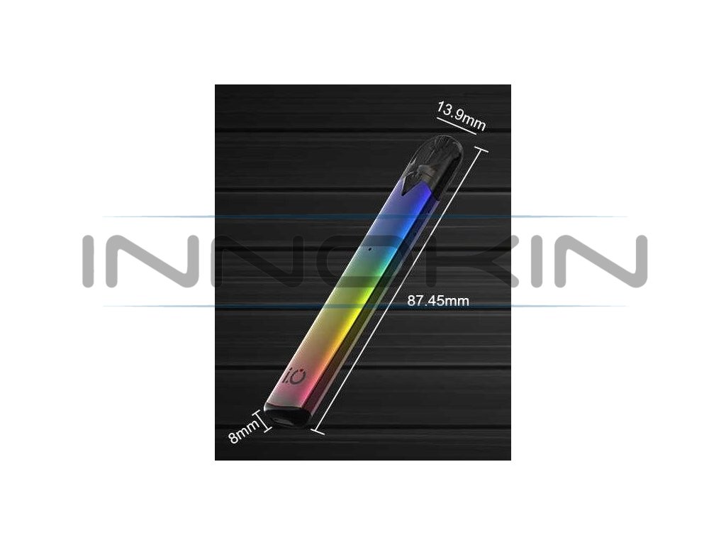 Design elektronické cigarety Innokin I.O je typu POD. Samotný POD se tedy zasouvá do baterie a je možné ho libovolně měnit a průběžně doplňovat e-liquidem. Celé tělo PODu je kovové, doplněné o prvky ze speciálního plastu. Celkové rozměry jsou pouhých 87,45 mm x 13,9 mm x 8 mm. Jedná se tak o opravdu drobné zařízení.
