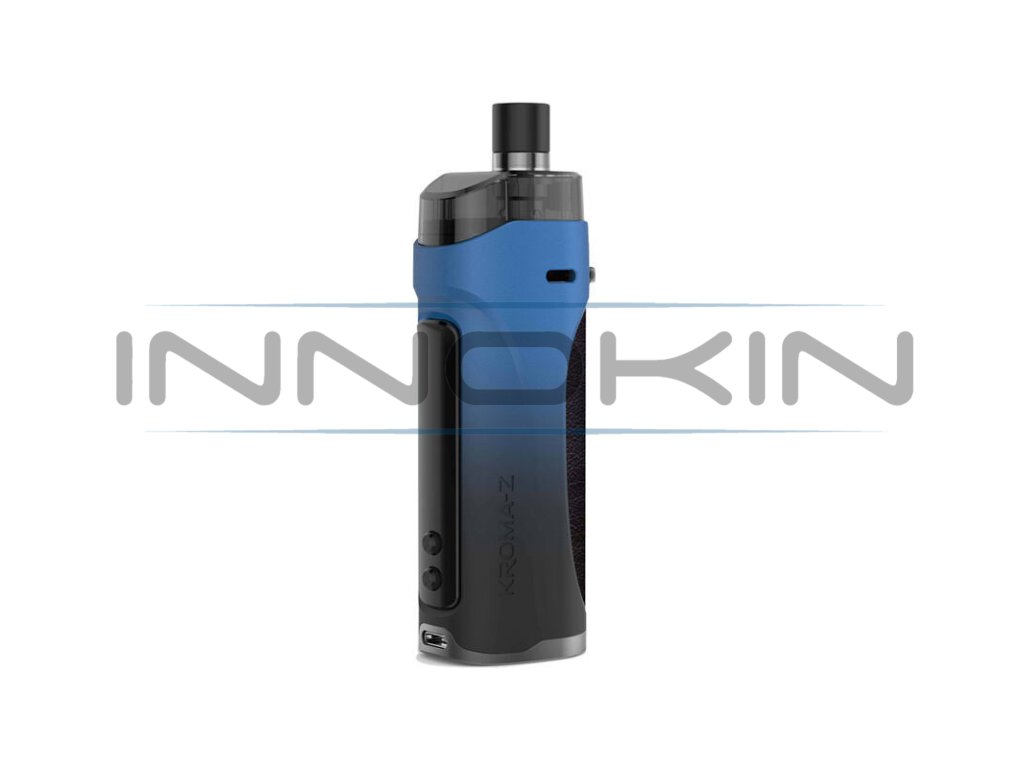 Innokin Kroma-Z Mod Pod Kit je praktická elektronická cigareta s rozsáhlými možnostmi využití, která osloví jak začátečníky, tak také pokročilé uživatele. Nabídne obrovskou kapacitu baterie, velký objem cartridge a snadné a uživatelsky přívětivé nastavení. Konstrukce s hořčíkové slitiny je nesmírně lehká a zařízení disponuje také perfektní ergonomií pro pohodlné držení a přenášení. K dostání je hned v šesti barvách. Rozměry celé e-cigarety činí 114 x 37,8 x 28,6 mm. Uvnitř se nachází integrovaná baterie s obrovskou kapacitou 3000 mAh, která se postará o bezproblémový chod zařízení a efektivně rychlý náběh žhavení. Baterii můžete dobíjet pomocí portu USB-C proudem až 1,7 A. Veškeré parametry se nastavují na LCD displeji umístěném v přední části. Ovládací panel se skládá z velkého žhavícího tlačítka a dvou regulačních tlačítek. Výstupní výkon lze regulovat v rozmezí 6 - 40 W.