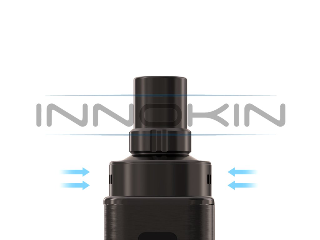 Joyetech eGo AIO ProBox je druhá verze oblíbeného ALL in ONE gripu, který přináší mnohá vylepšení. Již na první pohled je zřetelný jeho nový a moderní vzhled. Tradiční ergonomický tvar těla skrývá vestavěnou baterii o kapacitě 2100mAh. Velkou novinkou je volitelný režim konstantního a přímého napětí (viz detailní popis). Opět se můžeme spolehnout na systém horního plnění - po odšroubování vrchní části, plníte liquid jedním ze dvou otvorů přímo do nádržky o objemu 2ml. Vrchní regulace přívodu vzduchu byla nově umístěna po stranách clearomizeru - převzato od Cubis Pro. eGo AIO ProBox spolupracuje s atomizery řady BF. Clearomizer je podsvícen LED diodami. Při zamčené baterii dlouhým stiskem spínače si můžete vybrat barvu podsvícení clearomizeru (červené, žluté, zelené, modré, indigo, bílé a fialové). Nabíjení umožňuje micro USB vstup (e-cigaretu lze používat i při nabíjení).