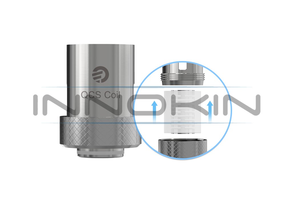 - Nový atomizer QCS - Snadná výměna bavlny při zachování nerezové trubičky s vyfrézovanými otvory (notchcoil)